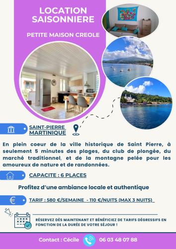 Situé à Saint-Pierre, l’hébergement Petite maison de village offre une vue sur le jardin. Il comprend un jardin, une terrasse et une connexion Wi-Fi gratuite. Cette maison de vacances possède un balcon. Cette maison de vacances avec climatisation se compose de 2 chambres, d'un salon, d'une cuisine entièrement équipée avec un réfrigérateur et une machine à café, ainsi que de 1 salle de bains avec une douche. Des serviettes et du linge de lit sont à votre disposition. Vous séjournerez à 200 mètres de ce lieu d’intérêt : Plage de Saint-Pierre. L'aéroport le plus proche (Aéroport international Martinique Aimé Césaire) est à 43 km.