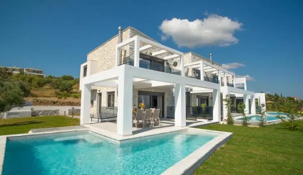 Boasting air-conditioned accommodation with a private pool, garden view and a balcony, Maximus Luxury Villas Polychrono is situated in Polykhrono.